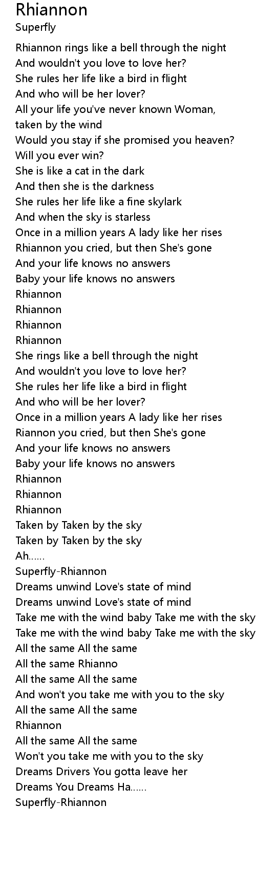 | [01:03.750] | Rhiannon you cried, but then She' s gone |
