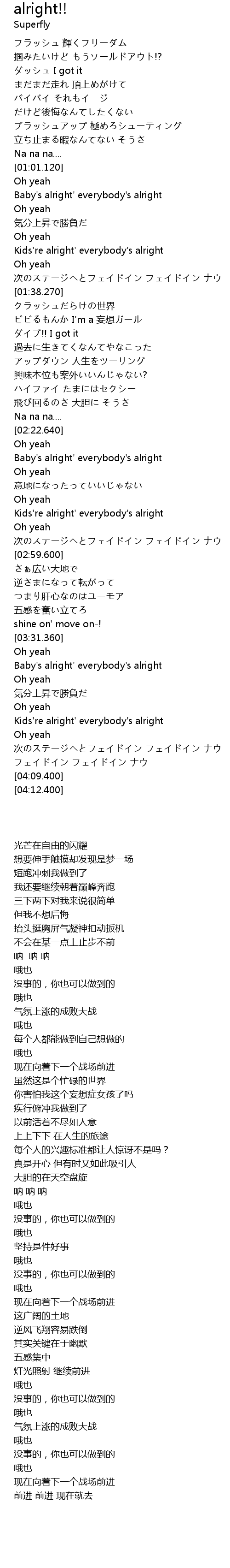| [02:33.180] | Baby' s alright' everybody' s alright |