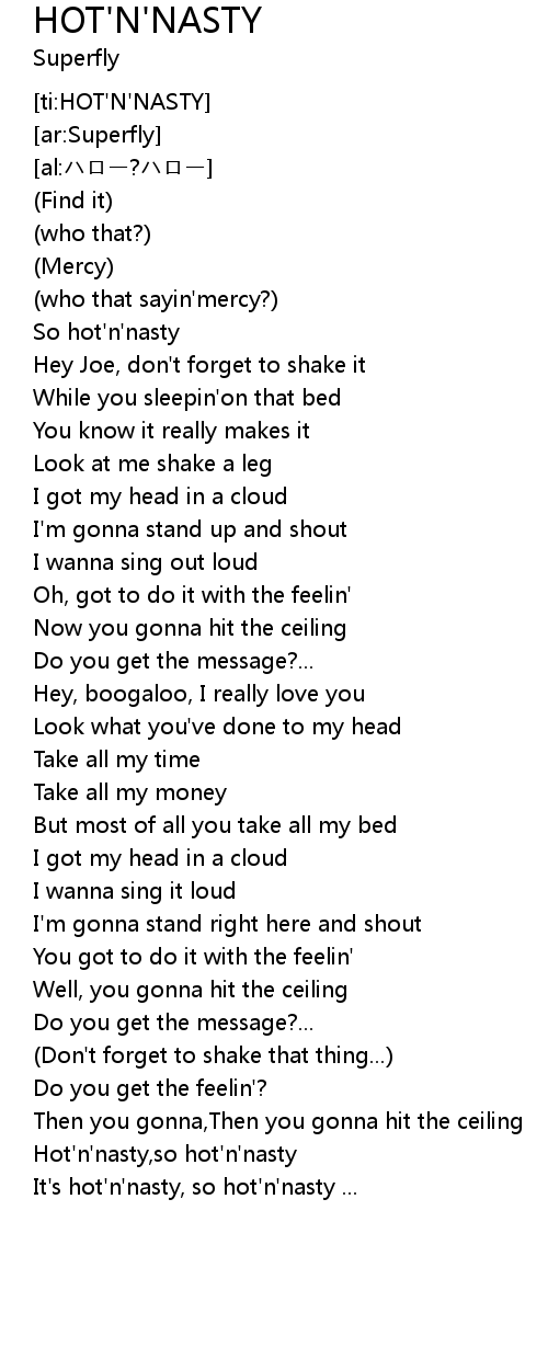 | [3:6.78] | It's hot'n'nasty, so hot'n'nasty ... |