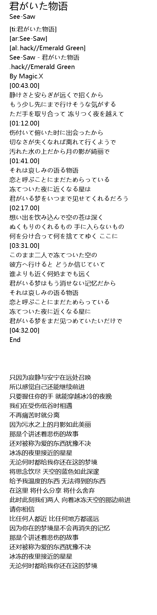 | [00:00.00] | See-Saw - 君がいた物语 |