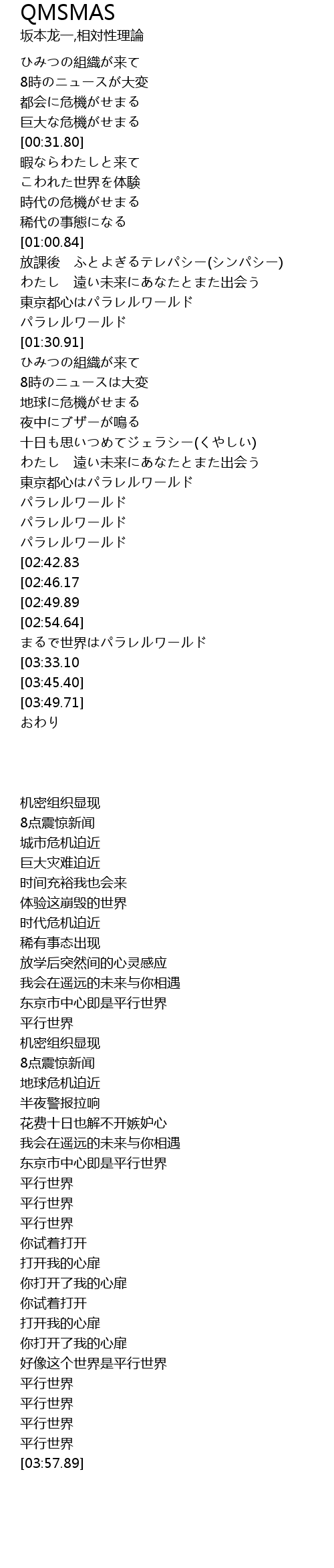 | [03:40.44][03:33.10][03:25.96][03:18.78] | パラレルワールド |