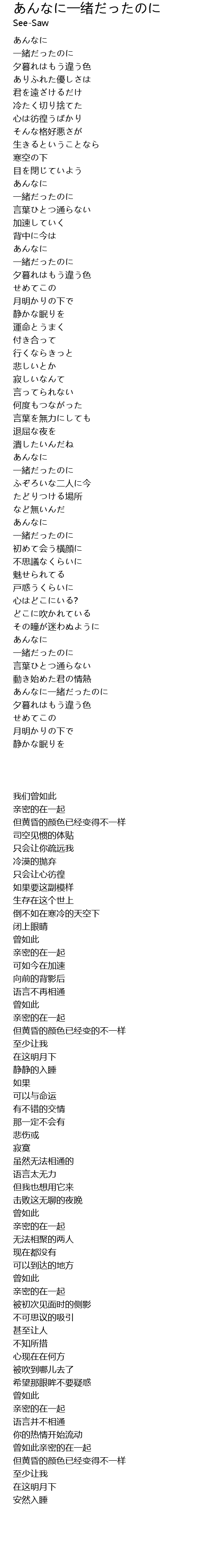 | [03:48.87] | あんなに一緒だったのに |