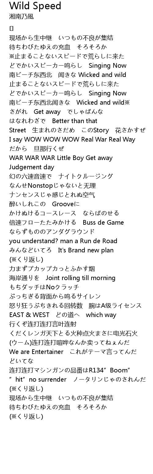 | 南ビーチ东西北 闻きな Wicked and wild | |