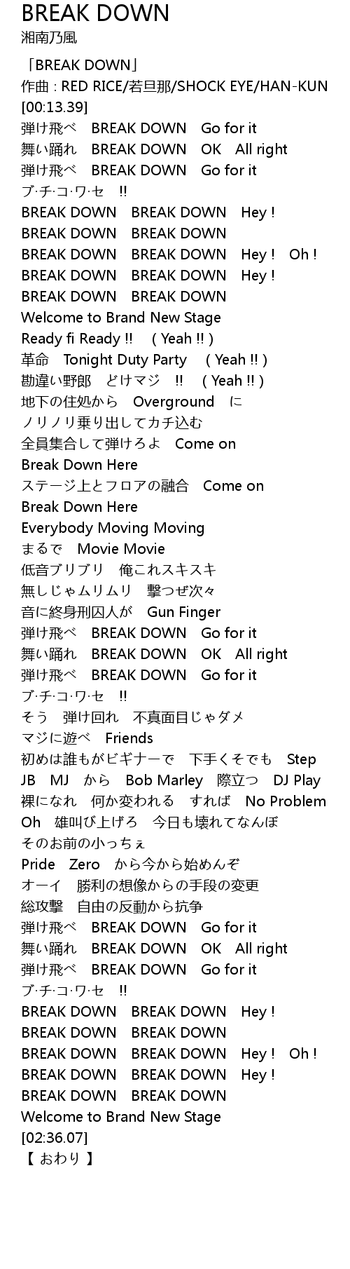 | [00:01.39] | 「BREAK DOWN」 |