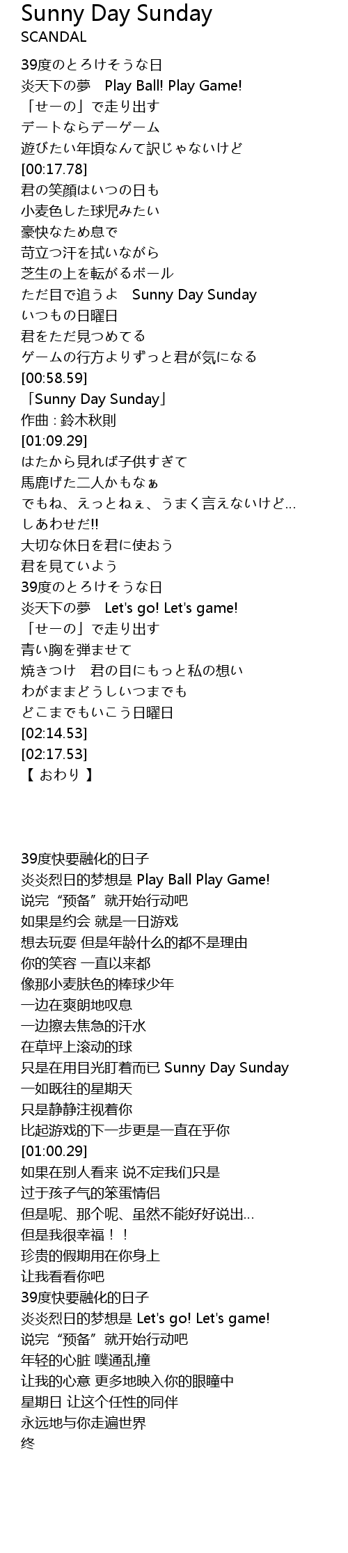 | [01:00.29] | 「Sunny Day Sunday」 |