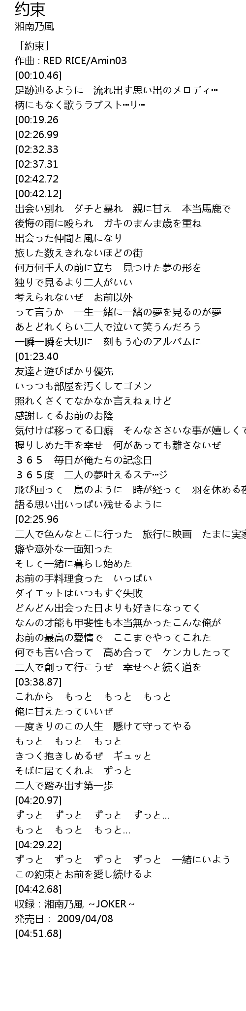 | [04:45.68] | 収録:湘南乃風 ~JOKER~ |