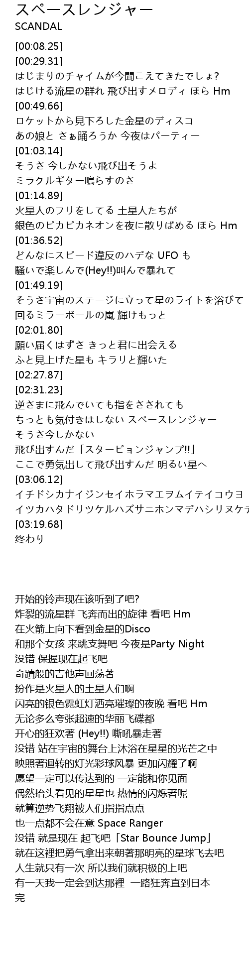 | [02:44.08] | ちっとも気付きはしない スペースレンジャー |