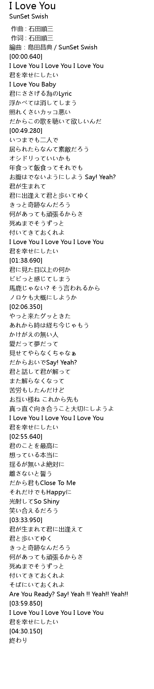 | [03:55.460] | Are You Ready? Say! Yeah !! Yeah!! Yeah!! |