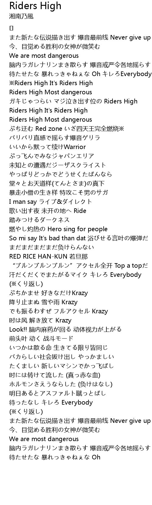 | ※Riders High It's Riders High | |