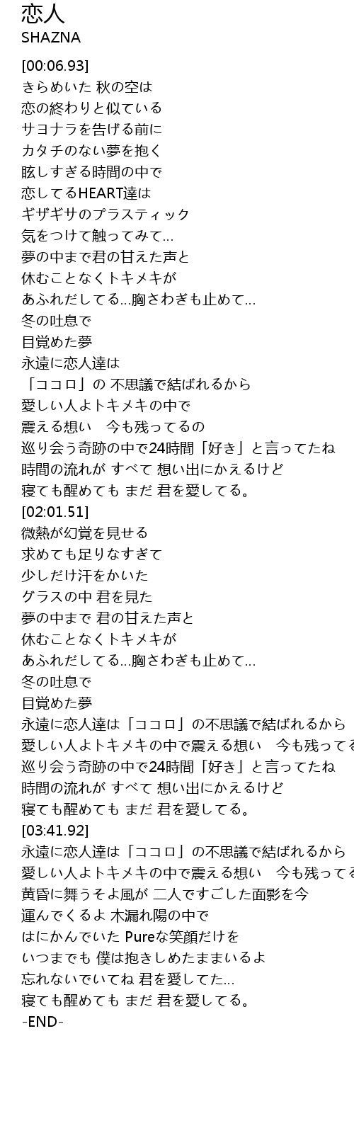 | [03:00.06] | 永遠に恋人達は「ココロ」の不思議で結ばれるから |