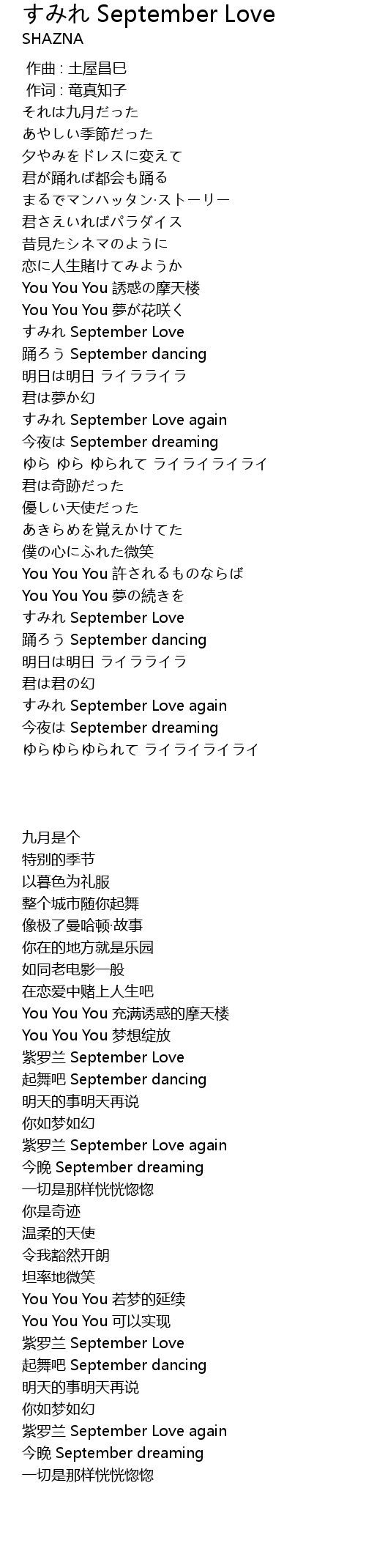 | [02:55.32] | 踊ろう September dancing |