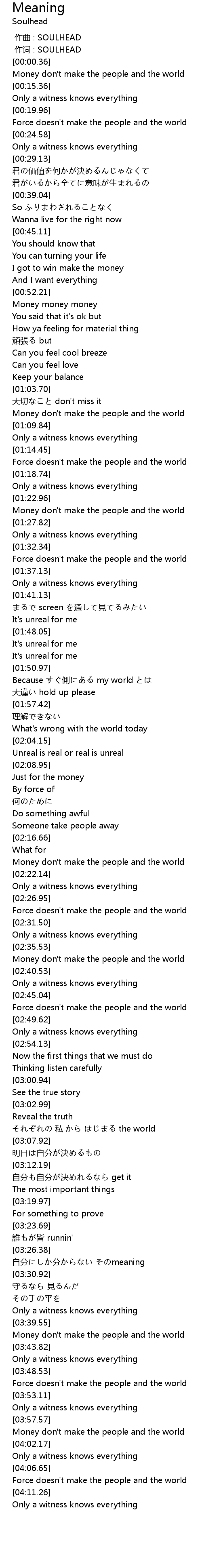 | [03:27.18] | 自分にしか分からない そのmeaning |