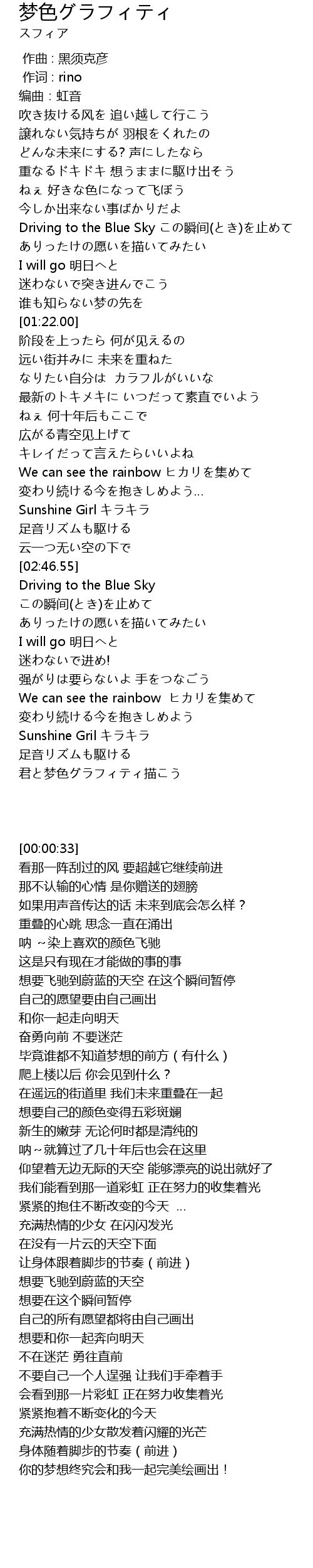 | [03:02.11] | Driving to the Blue Sky |