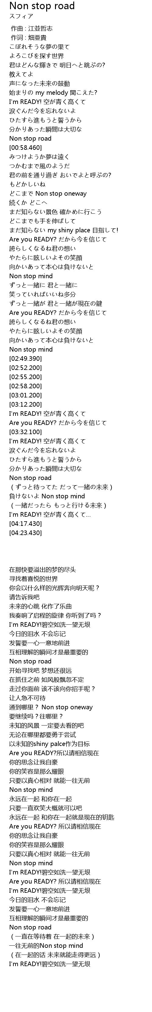 | [03:25.380] | Are you READY? だから今を信じて |