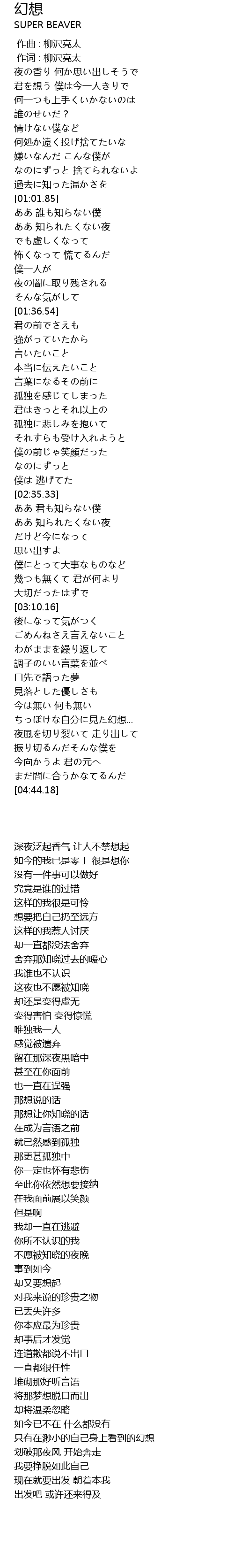 | [00:01.00] | 作词 : 柳沢亮太 |