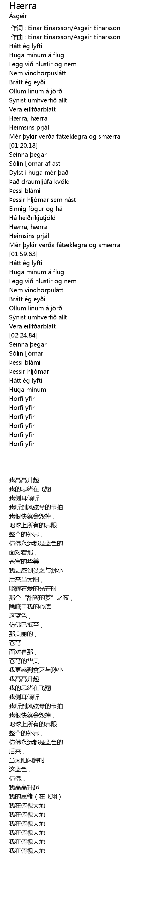 | [00:01.000] | 作曲 : Einar Einarsson/Asgeir Einarsson |