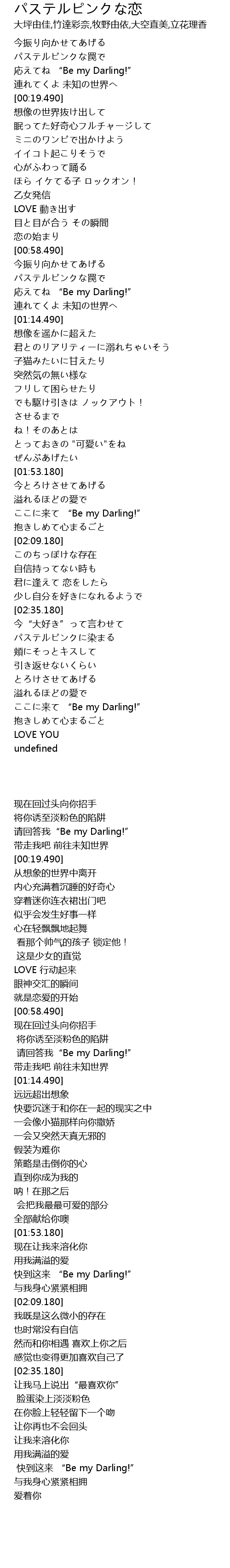 | [02:02.180] | ここに来て “Be my Darling!” |