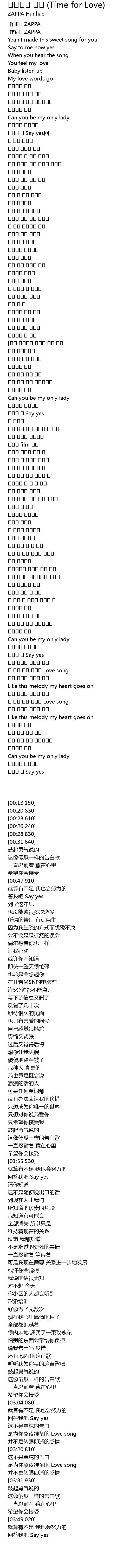 | [03:56.590] | 대답해 줘 Say yes |