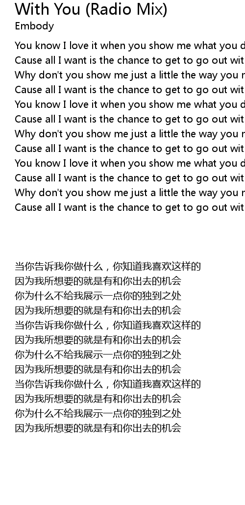 | [00:16.71] | You know I love it when you show me what you do |