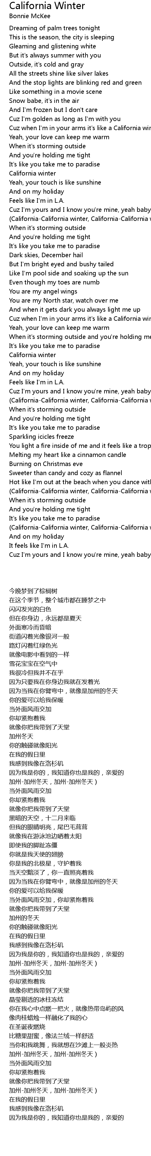 | [01:16.90] | CaliforniaCalifornia winter, CaliforniaCalifornia winter |