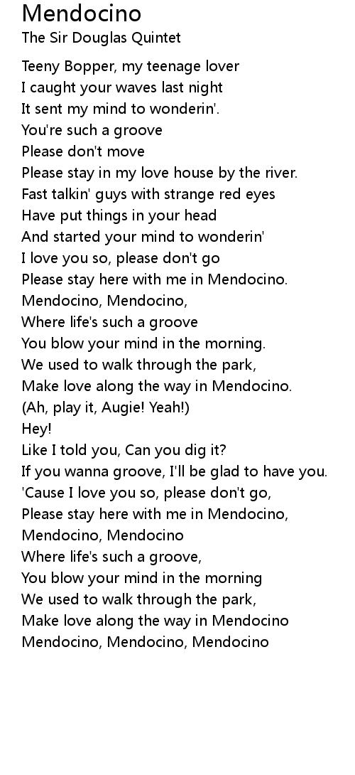 Please stay here with me in Mendocino, |