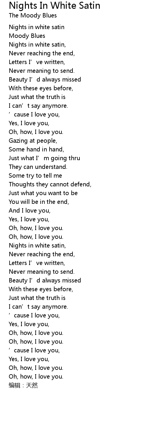 | [00:12.02] | Nights in white satin, |
