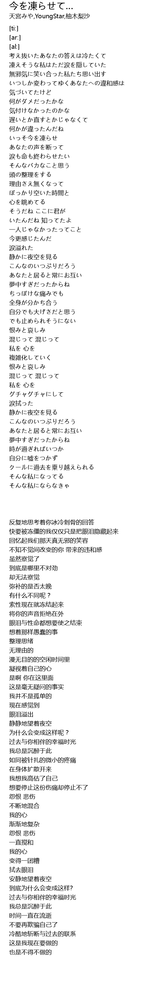 | [00:33.16] | 凍えそうな私はただ涙を隠していた |