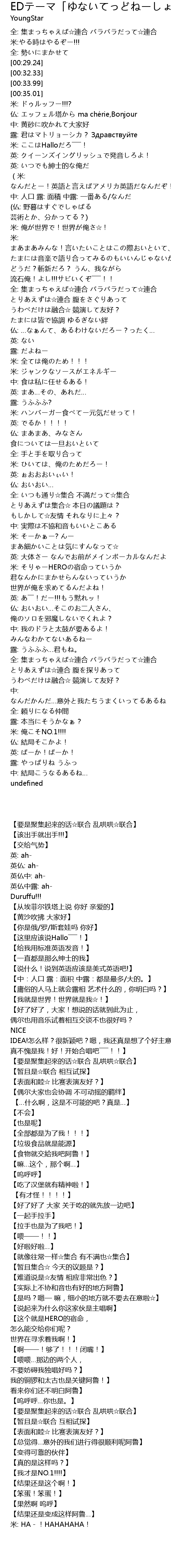 | [03:11.21] | 全: 集まっちゃえば☆連合 バラバラだって☆連合 |