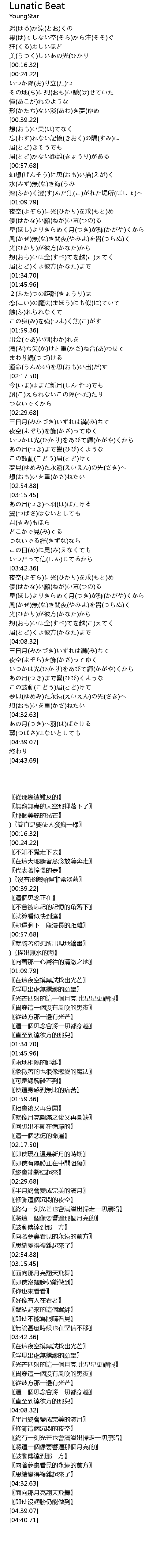 | [02:30.04] | 三日月(みかづき)いずれは満(み)ちて |