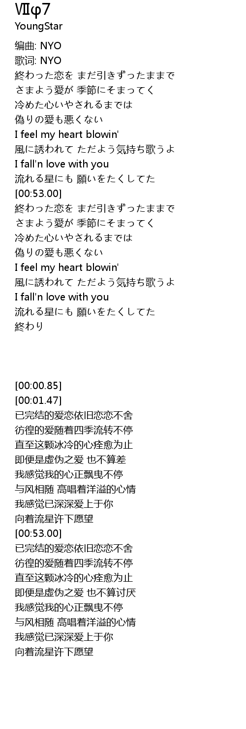 | [00:45.73] | 流れる星にも 願いをたくしてた |