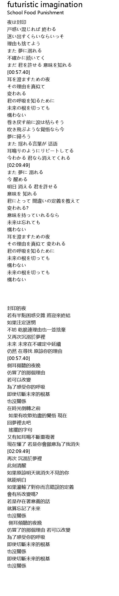 | [01:58.45] | 今わかる 君なら消えてくれる |