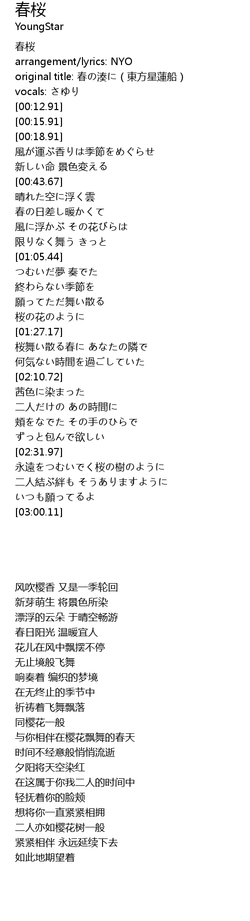 | [00:06.91] | original title: 春の湊に(東方星蓮船) |
