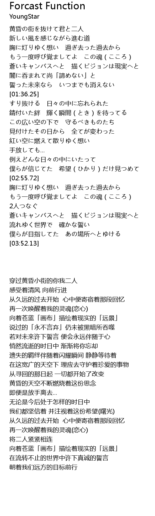 | [03:19.46] | 蒼いキャンバスへと 描くビジョンは現実へと |