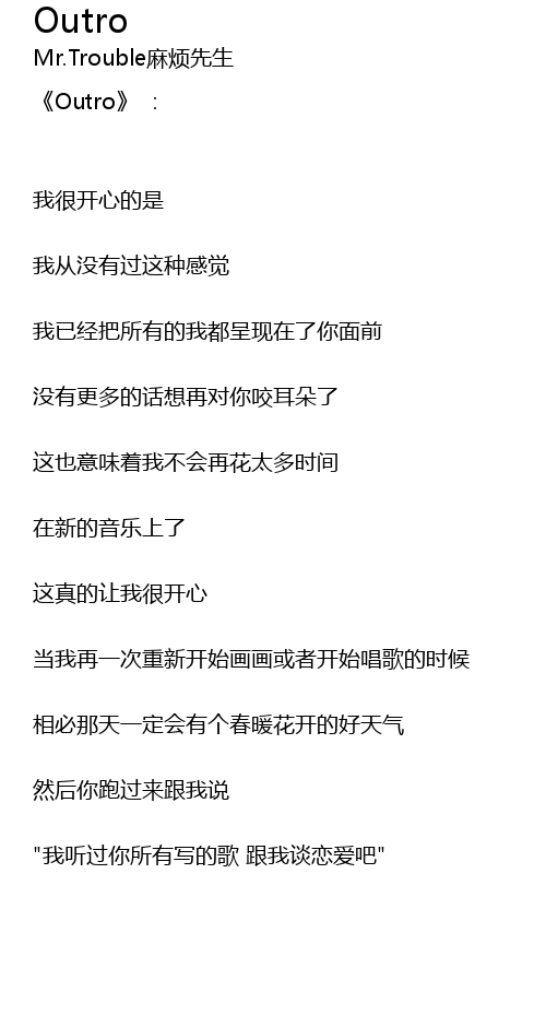 | "我听过你所有写的歌 跟我谈恋爱吧" |