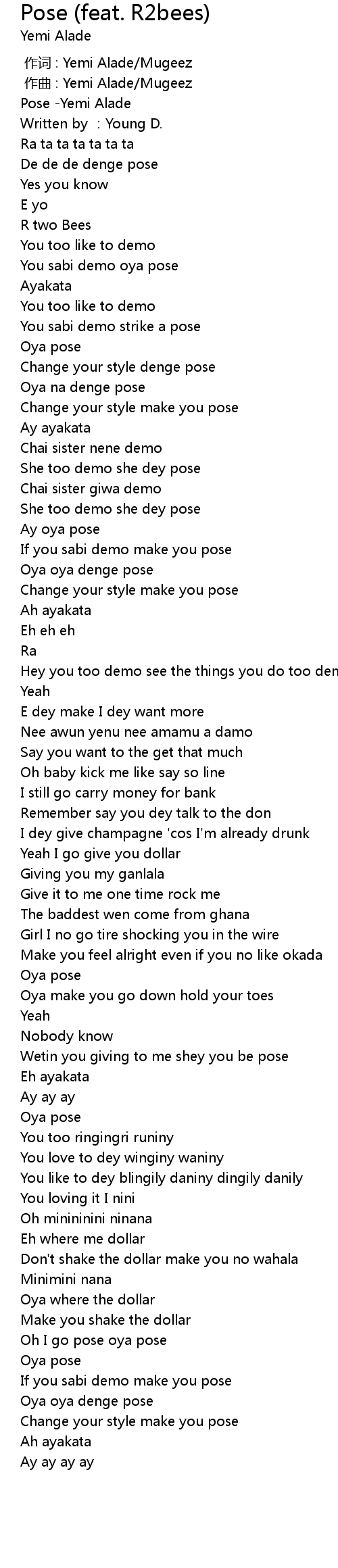 | [00:00.000] | 作词 : Yemi Alade/Mugeez |