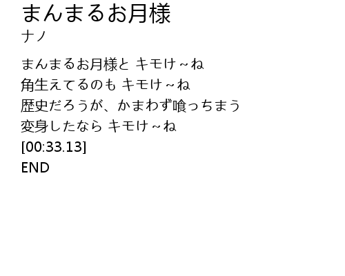 | [00:11.62] | まんまるお月様と キモけ~ね |
