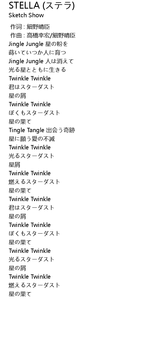 | [00:25.75] | Jingle Jungle 星の粉を |