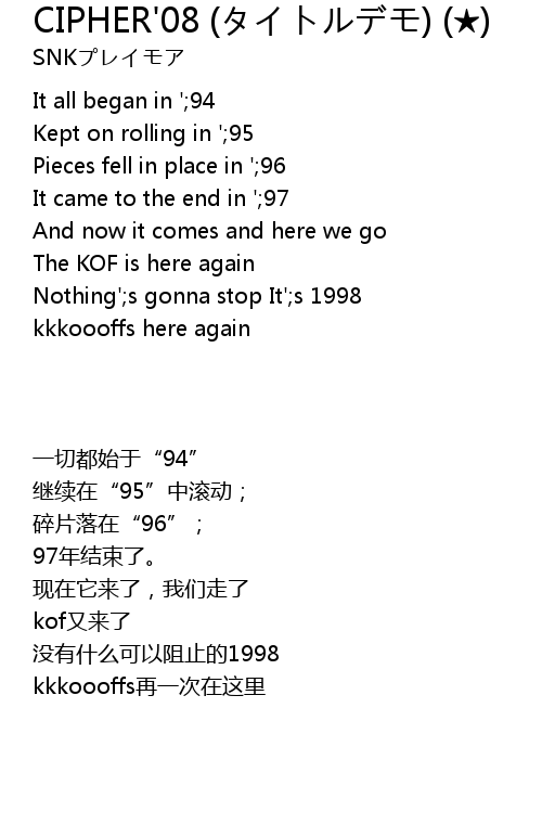 | Song | CIPHER'08 (タイトルデモ) (★) |