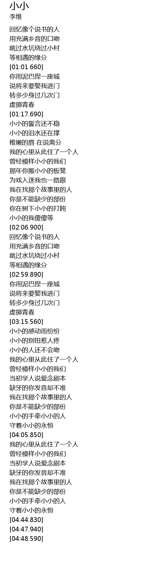 | [04:34.230] | xiǎo xiǎo de shǒu qiān xiǎo xiǎo de rén |