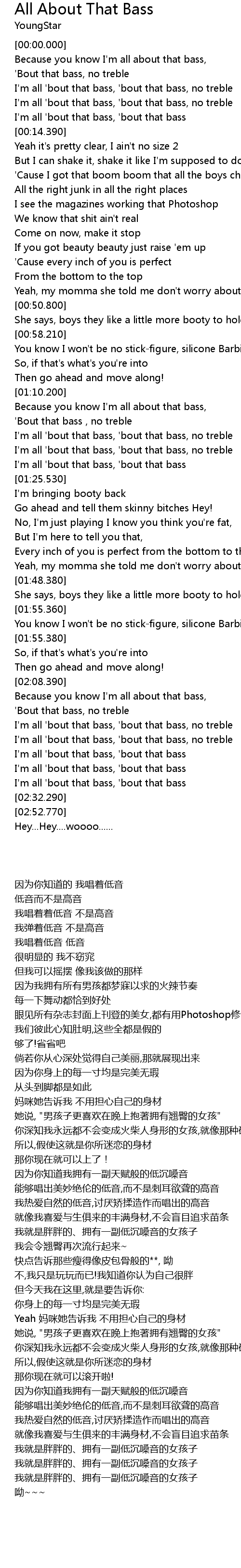 I'm all 'bout that bass, 'bout that bass, no treble |