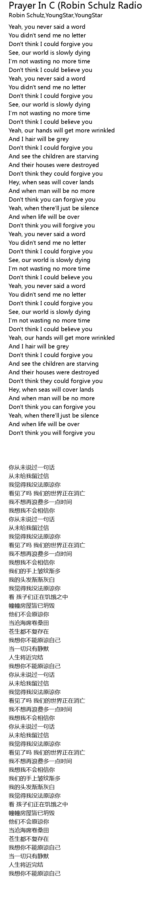 Prayer In C (Robin Schulz Radio Edit) Lyrics