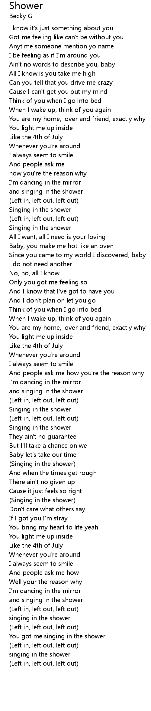 You got me singing in the shower |