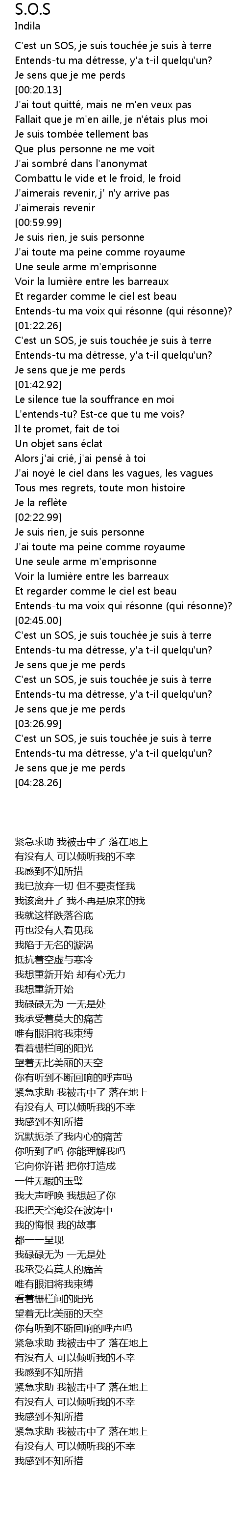 | [02:45.99] | C' est un SOS, je suis touche e je suis a terre |