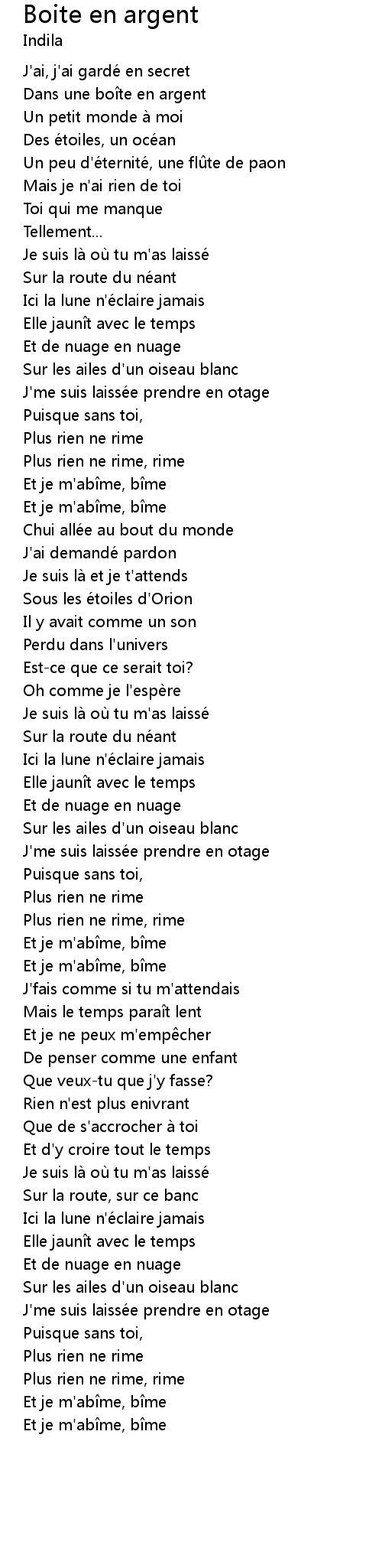 | Song | Boite en argent |