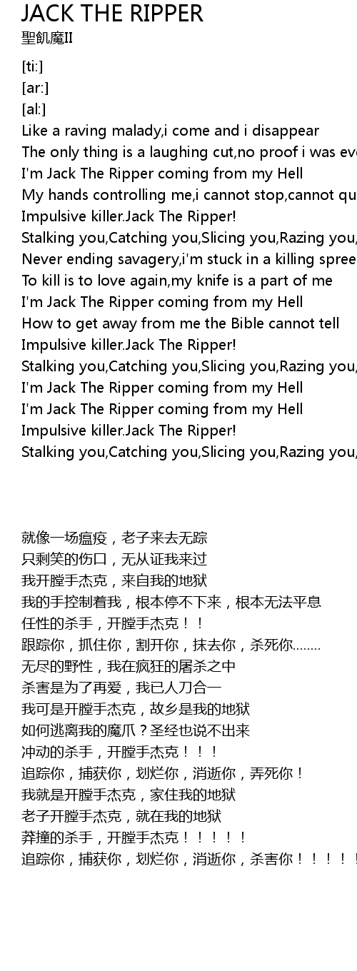 I'm Jack The Ripper coming from my Hell |