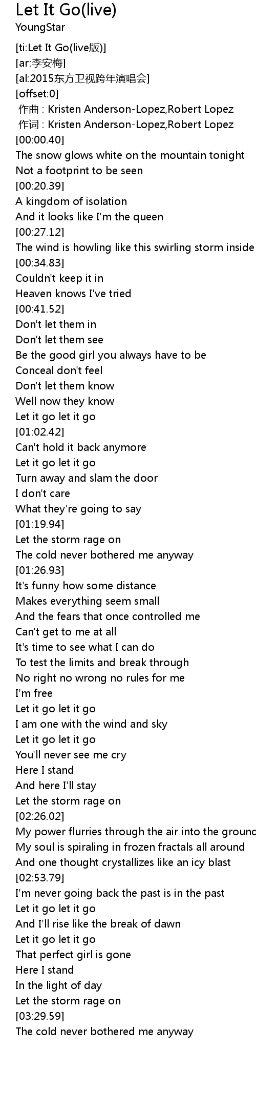 | [00:00.13] | zuò cí : Kristen AndersonLopez, Robert Lopez |