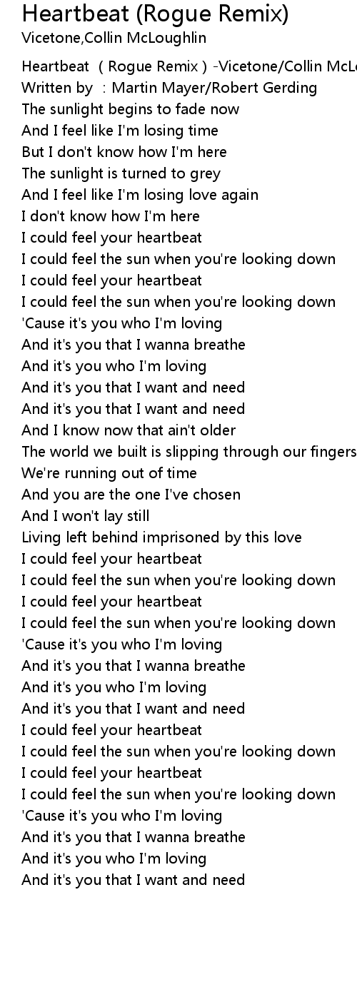| [00:00.65] | Heartbeat Rogue Remix Vicetone Collin McLoughli |