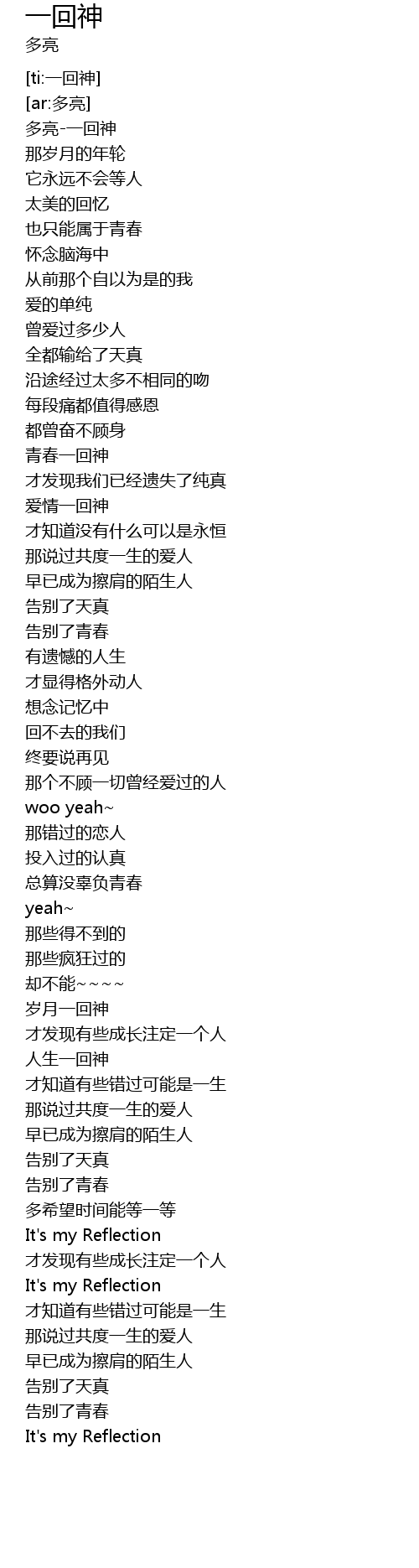 | [00:00.982] | 多亮-一回神 |