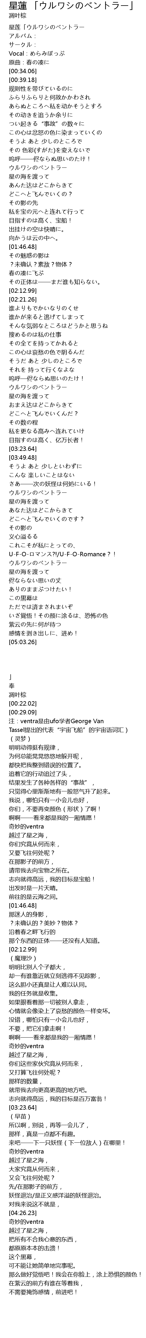 | [00:00.62] | 星莲「ウルワシのベントラー |