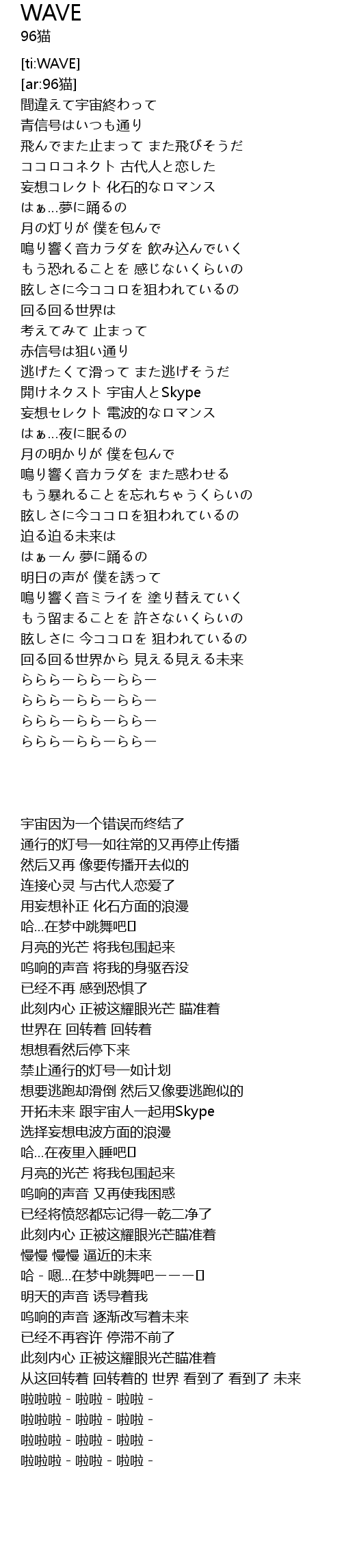 | [01:44.990] | 鳴り響く音カラダを また惑わせる |